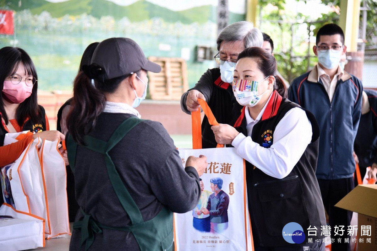 花蓮春節生活物資發放 徐榛蔚籲民眾盡快接種第三劑