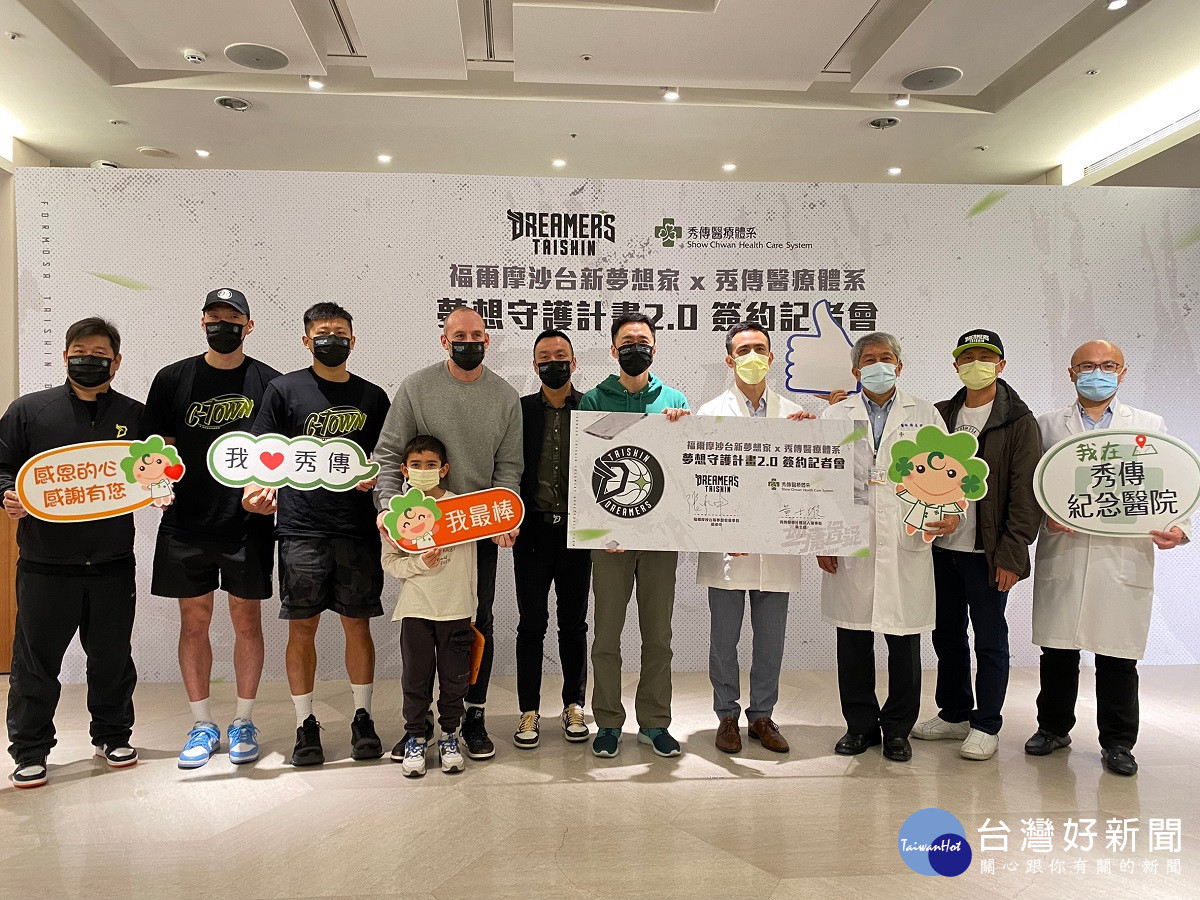 為讓球員們得以無後顧之憂的專心於賽場上征戰。本季秀傳醫療體系再度與台新夢想家合作,26日在秀傳紀念醫院南平大樓文創藝廊舉辦「福爾摩沙台新夢想家 x 秀傳醫療體系夢想守護計畫2.0」簽約記者會,秀傳醫療董事長黃士維、彰化秀傳醫院院長楊基滐、阿斯貝克董事長黃柏文和夢想家董事長張承中、總教練、球員吳松蔚和成力煥等貴賓皆蒞臨現場。