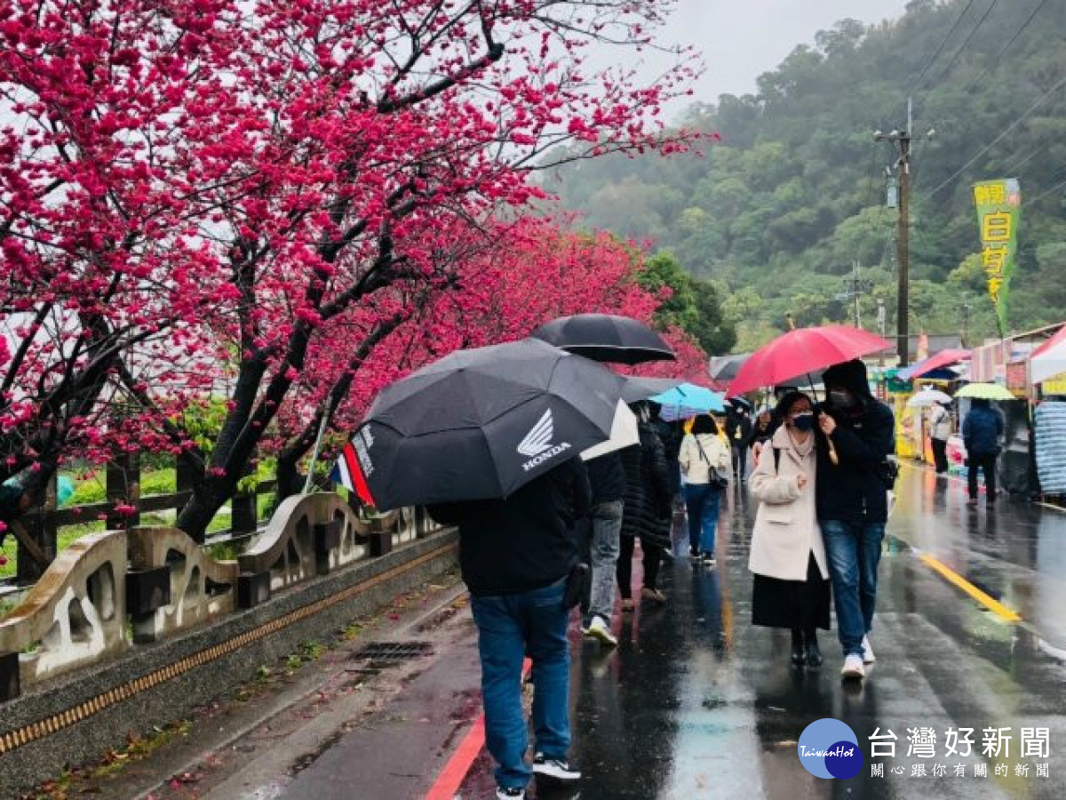 入冬到立春以來,這三天的氣候最寒泠,尤其細雨不斷,增添了更泠的寒度,不過櫻花卻反應出適合他它的開出密集又艷麗的色質,此刻在后里泰安景點櫻花季開鑼中,民眾不懼寒濕的穿草厚重衣服、手撐雨傘,大量湧入觀賞,其間有情侶、家族或朋友不斷的打卡,拍照留下最美的畫面。