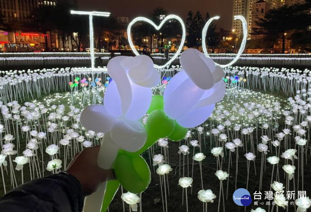 觀旅局表示,除了玫瑰花燈海,現場還有情侶們最青睞的「IOU」的主題燈、小朋友最愛追著玩耍的出入口投影燈,以及讓人看了都會莞爾一笑的撩妹金句打卡牆。而白色玫瑰代表著對感情的純潔無瑕,無論是親情、友情、愛情,透過白玫瑰都能找到最初的那份純真與感動,而每個例假日也都有搭配街頭藝人演出及市府市場管理處安排的文創市集,好拍、好看、好買又好逛。