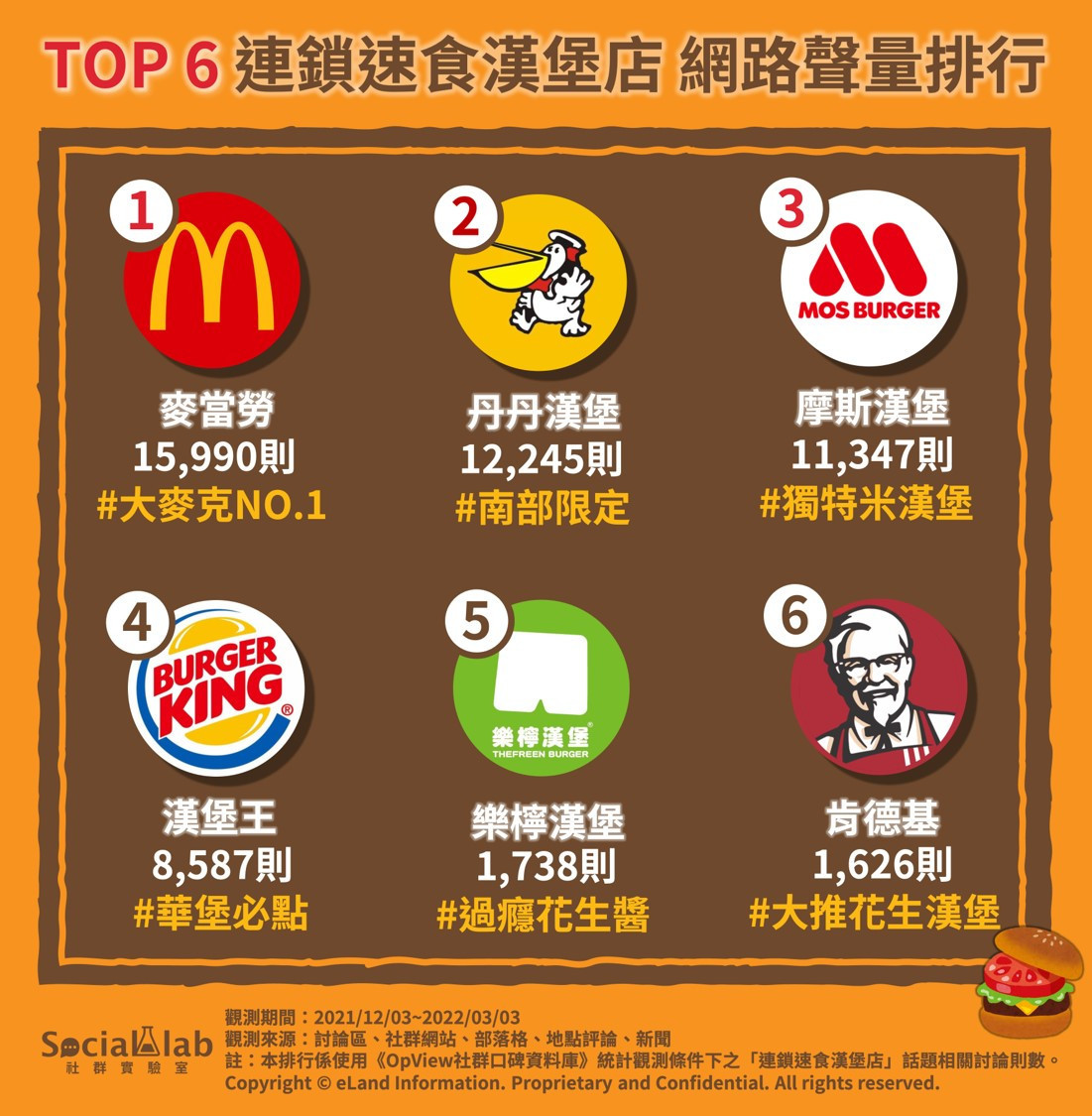 《Social Lab社群實驗室》本次透過《OpView社群口碑資料庫》追蹤近三個月內「連鎖速食漢堡店」話題的網路聲量表現,帶您了解網友熱議的連鎖速食漢堡品牌與經典配料。