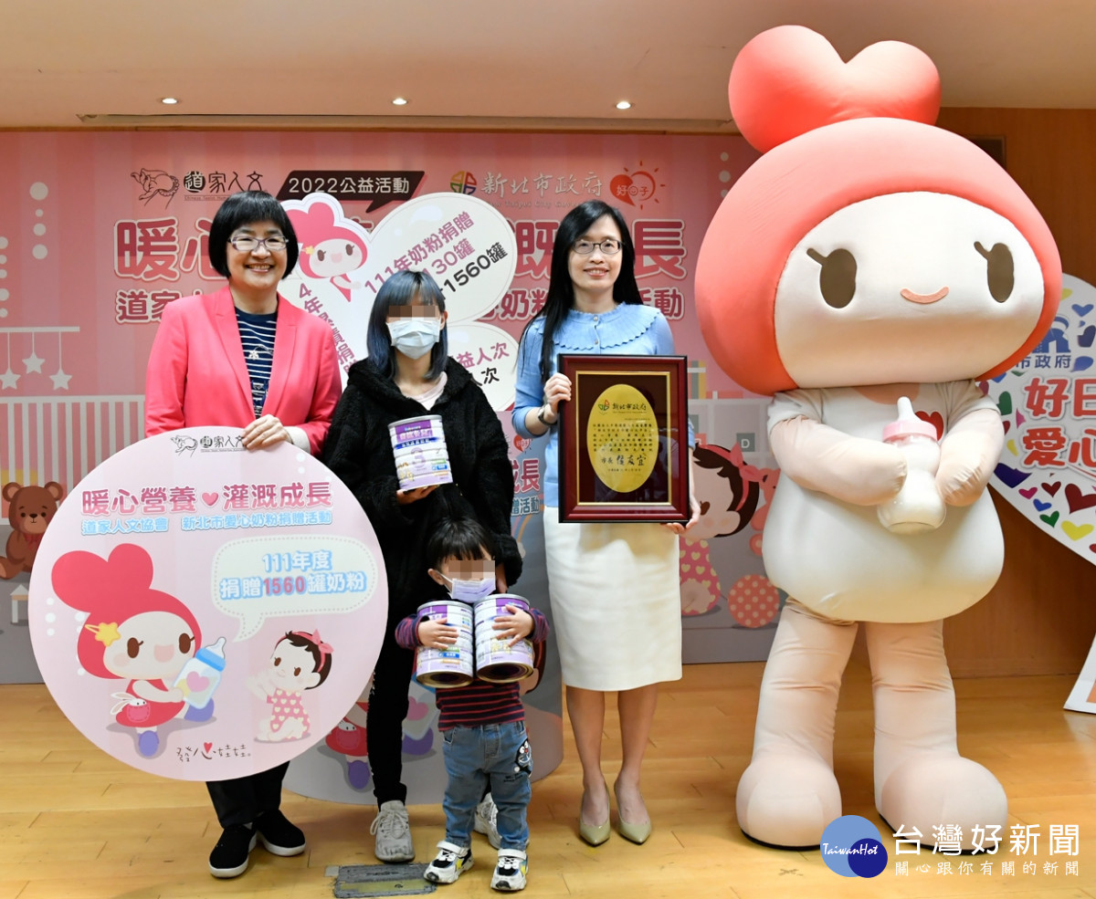 一罐動輒數百元、消耗量大的奶粉,對許多弱勢家庭卻是難以負荷的開銷。道家人文協會於兒童節前夕四度依新北市弱勢婦幼家庭需求,每月捐贈130罐0-3歲學齡前奶粉,持續一年共計1560罐,由社會局張錦麗局長代表受贈。協會自去年每月110罐加碼至130罐,四年累計捐贈數量共4800罐,累積受益人次達3600人次。