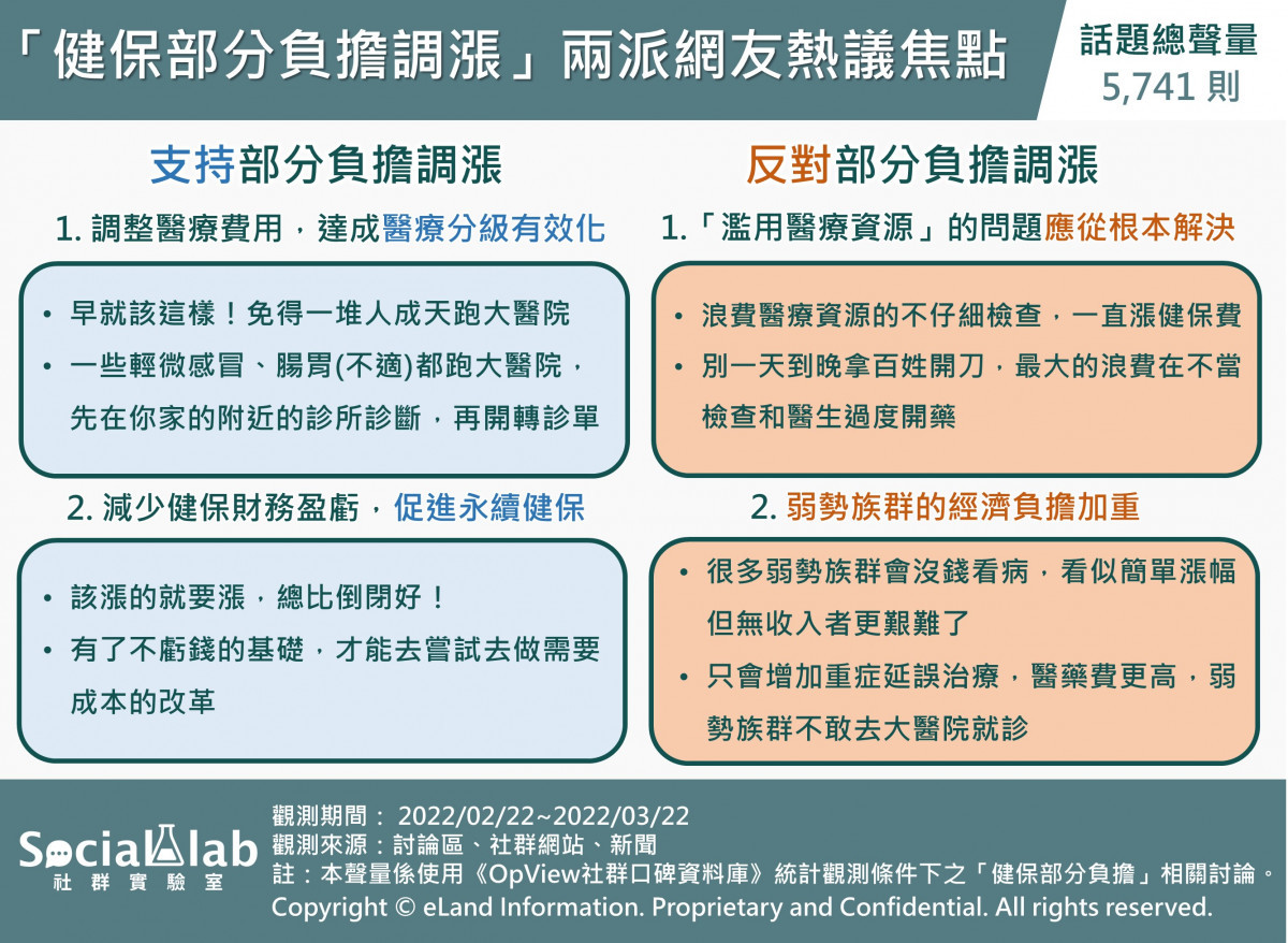 《Social Lab社群實驗室》本次透過《OpView社群口碑資料庫》追蹤近一個月內「健保部分負擔」話題的網路聲量表現,帶您了解健保部分負擔費用調漲的網路聲量討論,以及網友的意見與看法。