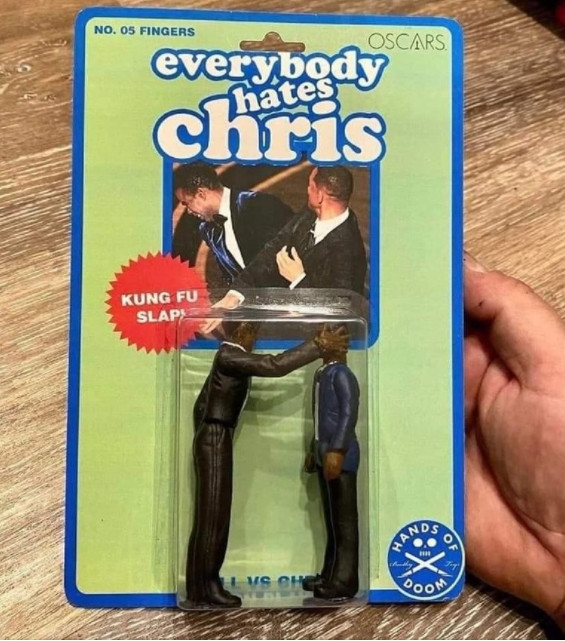 就在打人風波餘波盪漾之際,有玩具公仔業者快速推出商品,外包裝上更是打上「大家都討厭克里斯」的廣告文案。意外引起許多國外網友熱議,有人質疑這似乎是喜劇演員的橋段;也有人認為這商品推出的速度與品質,跟疫苗一樣;更有網友突發奇想,表示或許開設一個討厭克里斯節目,是一個好的想法。