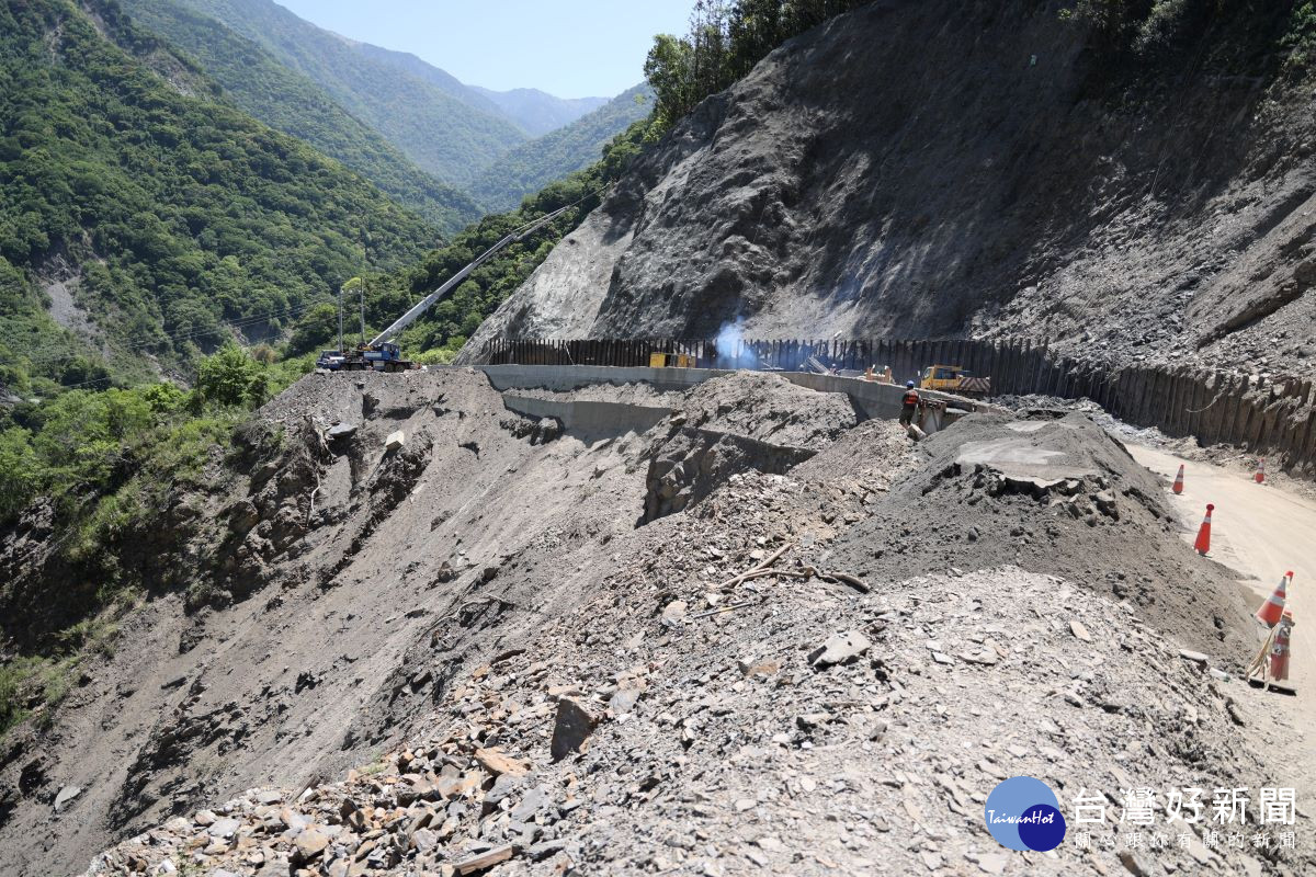 至於30.7K處的道路上邊坡坍方災雕緊急復建工程,林縣長說,因受地震及豪雨影響復建面積追加近2,000平方公尺,總經費也從原本的600多萬元追加到近1,000萬元,今天看到工區正在施設噴凝土護坡,進度已達65.7%,超前2.2%,應可在5月初汛期高峰前順利完工。
