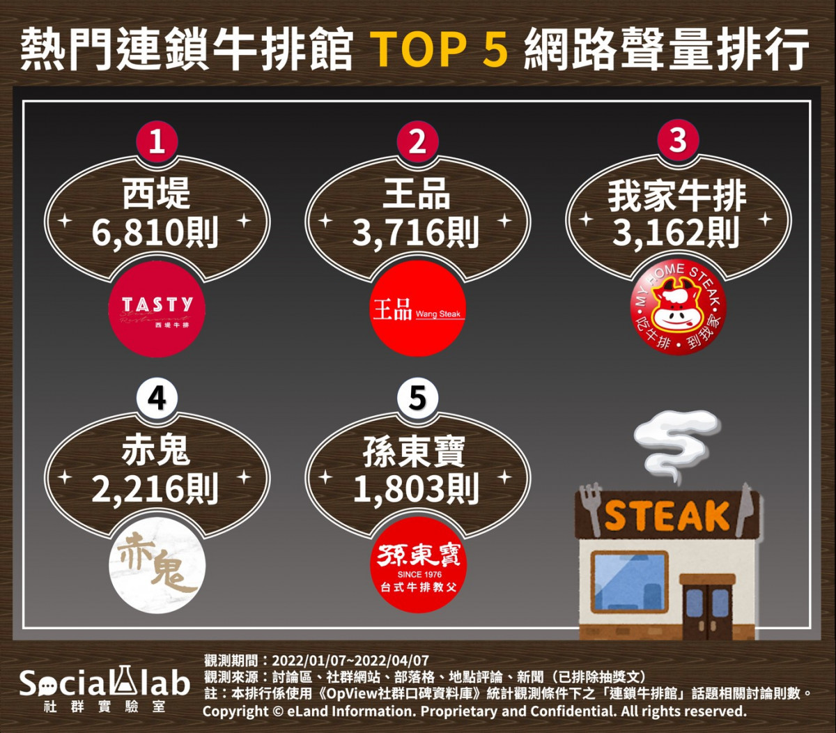 《Social Lab社群實驗室》本次透過《OpView社群口碑資料庫》追蹤近三個月內「連鎖牛排館」與「牛排部位」話題的網路聲量表現,帶您了解網友熱議的連鎖牛排品牌與牛排部位。