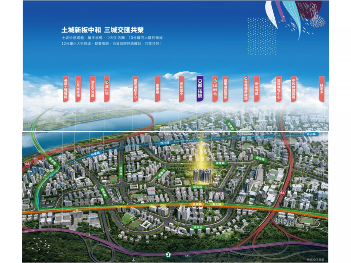 隨著板橋、中和市區的飽和,在禁建解除後,土城區隨即湧入大量開發建案。在周邊遠東通訊園區、頂埔科技園區、中和軟體園區科技產業蓬勃發展,及Google研發中心、亞馬遜、鴻海集團總部進駐帶進移居就業人口,醫學中心等級醫療服務及交通、公共設施相繼進駐的態勢下,土城區都市版圖持續擴大,宜商宜居的未來性備受矚目。重劃區目前尚有腹地,未來仍有大量建案進場的可能,但以地方機能擴充來看,未來土城環境核心仍在市中心周邊,更推升其地段價值,而市區素地難尋,對重視生活品質的換屋族而言,安和琉域的千坪大基地極其難得,雙併大四房規劃的開闊空間尺度十足是市心夢幻逸品。