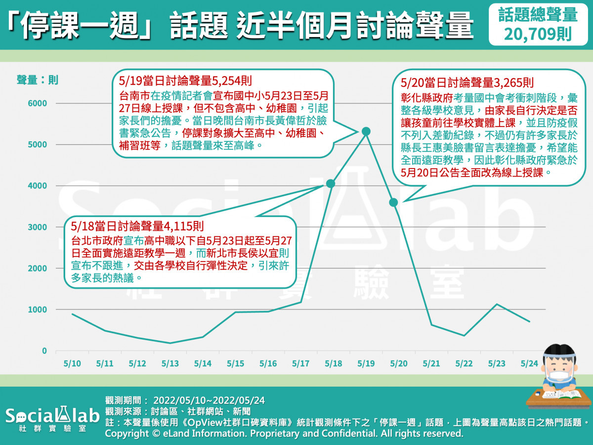 《Social Lab社群實驗室》本次透過《OpView社群口碑資料庫》追蹤近半個月內「停課」話題的網路聲量表現,帶您了解有關停課與遠距教學的討論聲量與看法。