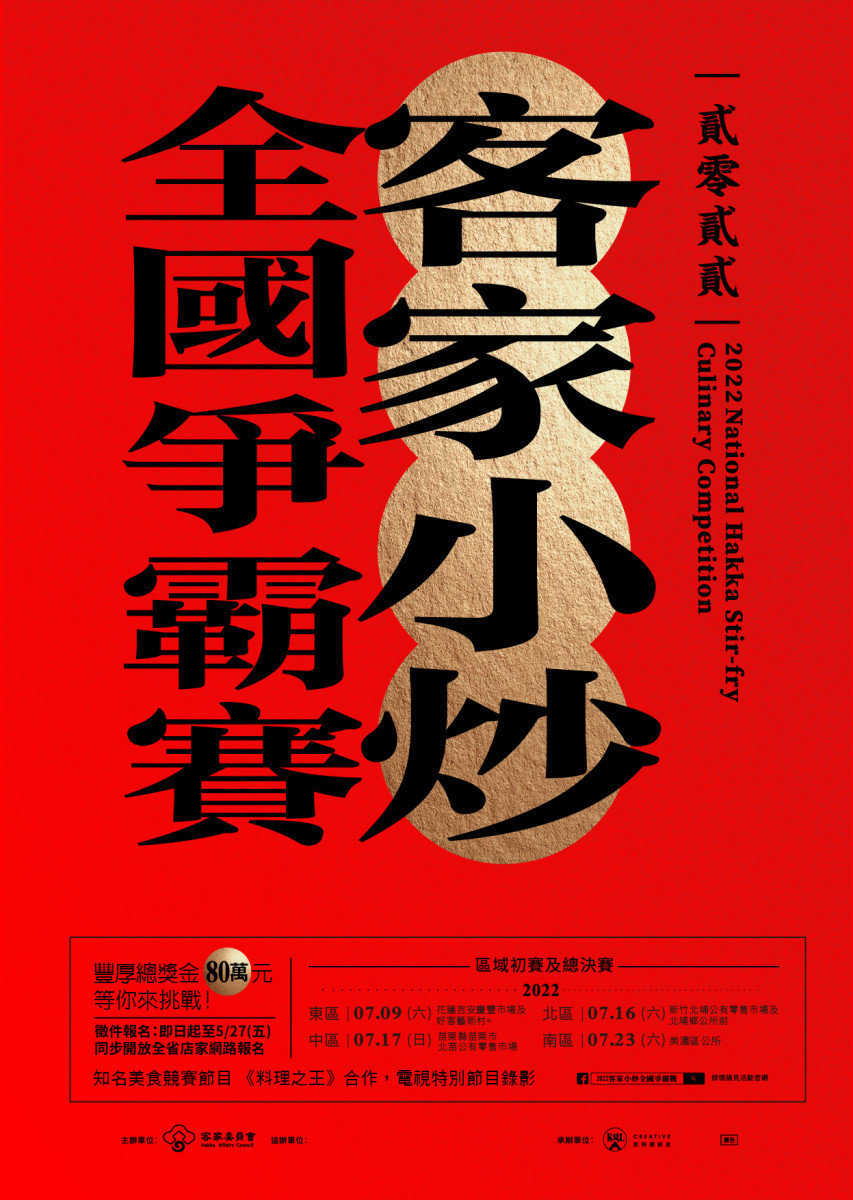 客家委員會(下稱客委會)為推廣客家美食帶動客庄發展,於全國北、中、南、東推辦「2022客家小炒全國爭霸賽」,決賽首創結合電視台知名料理節目「料理之王」合作製播,由「客家型男大主廚」曾國城擔任節目主持人,總獎金高達80萬元,本競賽將於5/27截止報名,歡迎客庄餐廳業者把握良機。